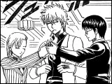Right in the middle of the chaos, Madam Yagami came. The now-drunken came to mess with her before Kagura ended up throwing up at her face. When everyone had seemingly settled down and gathered at a table with the Madam, Saigou paid the drinks. The hosts tried to have a proper conversation with the Madam, yet ended up being beaten up by Otae, Tsukuyo, and Kagura. Sougo built a Tequila tower, attempting to have them so drunk that they couldn't move. Though, Gintoki and Hijikata were thrown towards the tower, thus destroying it.