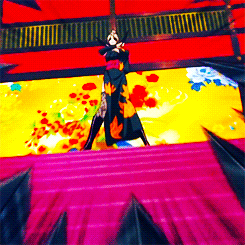 Tsukuyo’s preferred attire is a black kimono, without a right sleeve and exposing her right leg, decorated with autumn leaves, held by a red obi. On her right arm, she sports a detached sleeve that goes from her mid-bicep to her wrist. She also wears fishnet stockings and black high-heel boots that reach just below the knee. She’s often seen smoking akiseru, a trait she shares with fellow characters, Takasugi Shinsuke, Doromizu Jirochou, Terada Tatsugorou and Kouka.
